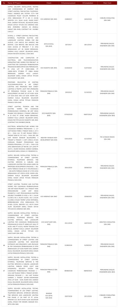 CONSTRUCTION AND COMPLETION OF ELECTRICAL AND TELECOMMUNICATION INFRASTRUCTURE WORKS FOR PRECINCT 10 (WHITTEN) FOR CADANGAN PEMBANGUNAN PERUMAHAN BERCAMPUR DAN PERNIAGAAN, DI ATAS LOT PT 15559-15606, PT 15608-15674, PT15803, PT 15804 MUKIM BERANANG, DAERAH HULU LANGAT, SELANGOR DARUL EHSAN UNTUK TETUAN ECO MAJESTIC SDN. BHD.